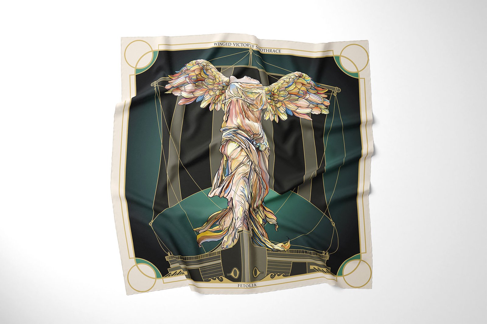 We are proud to unveil our latest creation – an exclusive scarf inspired by the Victory of Samothrace. Crafted with the finest materials and exceptional attention to detail, this limited-edition piece embodies timeless elegance and sophistication. A true collector’s item for those who cherish beauty and rarity.